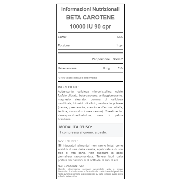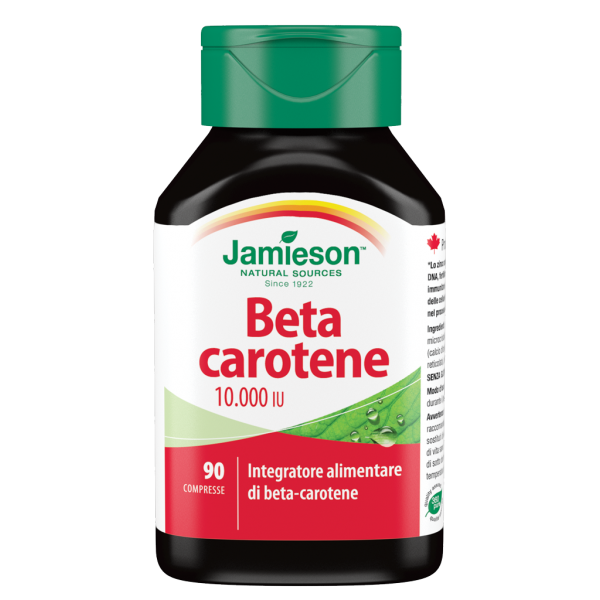 Beta Carotene 10000 IU di Jamieson con 1 sola compressa fornisce 6 mg di beta-carotene.