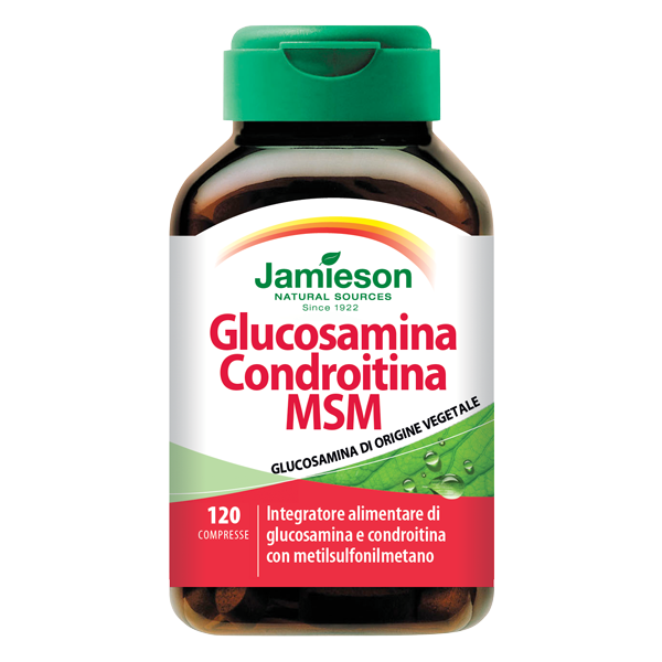 Glucosamina Condroitina MSM di Jamieson è un rimedio a base di glucosamina solfato e condroitin solfato, componenti della cartilagine articolare, e di metilsulfonilmetano (MSM), fonte di zolfo organico altamente biodisponibile.