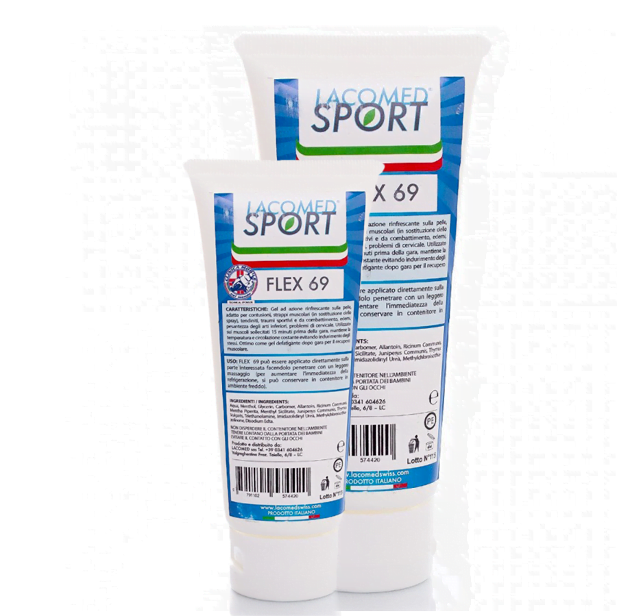 Il Gel Lacomed Sport Flex 69 è un gel ad azione lenitiva, rinfrescante e analgesica ideale in fase di recupero muscolare e in caso di contusioni, traumi sportivi e pesantezza degli arti.