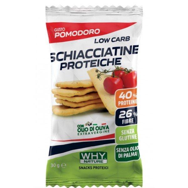 Le schiacciatine proteiche low carb Why Nature sono lo snack perfetto per chi vuole un’alimentazione ricca di proteine ma povera di carboidrati. Grazie alla loro croccantezza e ai gusti naturali disponibili – natural, rosmarino e pomodoro – risultano appetitose e pratiche in ogni momento della giornata. Ideali come spuntino proteico o come sostituto del pane, apportano il giusto mix di proteine di alto valore biologico ottenute da albume fresco e proteine del latte, e sono arricchite con olio extravergine di oliva.