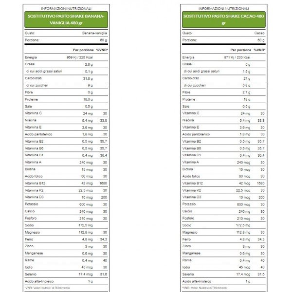 | Modalità d'uso | Mescolare una porzione con acqua o latte, come indicato sull'etichetta, e consumare come sostitutivo di un pasto principale. |